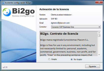 Para poder continuar debe aceptar el contrato de licencia y pulsar en "Siguiente".