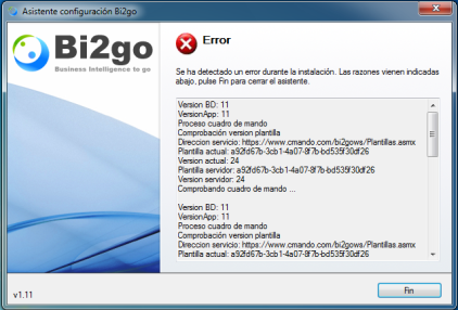 Si se produce algún error en la recarga de datos aparecerá un mensaje indicando donde está el problema, en caso contrario, mostrará un mensaje como que la recarga