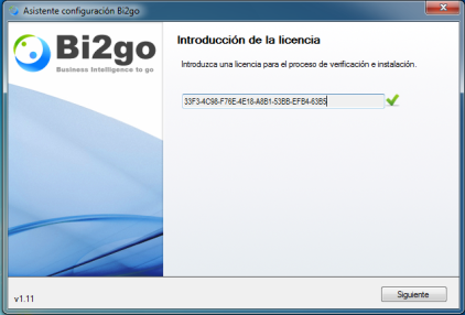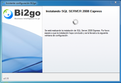 Pulse en el botón "Siguiente" para comenzar la configuración de Bi2go. El instalador comprueba si está instalado el servidor de SQL Server,