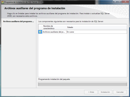 Tras pulsar el botón “Siguiente” comienza la instalación del servidor. El asistente le muestra en cada momento en que punto de la instalación del SQL Server se