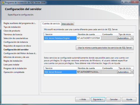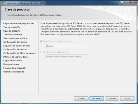 instalación de SQL Server 2008 y pulse "Siguiente". En la pantalla de clave de