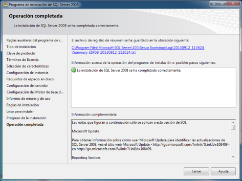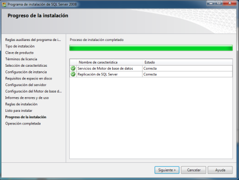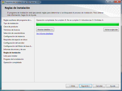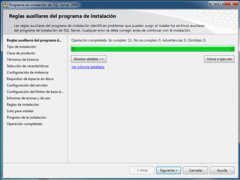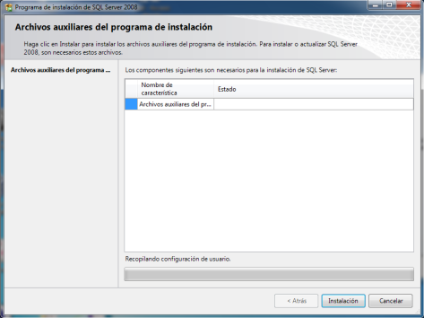 Pulse "Instalación" para comenzar a instalar los archivos auxiliares necesarios para terminar con exito la instalación del SQL Server 2008.