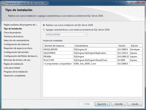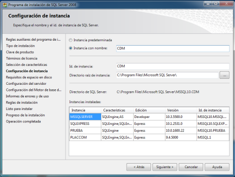 Compruebe el nombre de la instancia y pulse en el botón “Siguiente” dos veces: