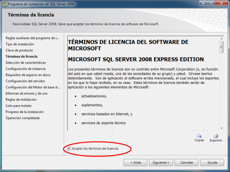 Debe marcar la opción “Acepto los términos de licencia” y pulsar “Siguiente”.