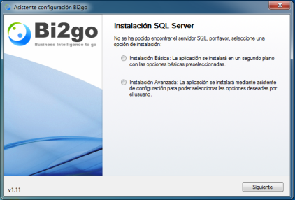 Si ha tenido problemas con la instalación básica del SQL Server debe seleccionar la opción de Instalación Avanzada y pulsar “Siguiente”: