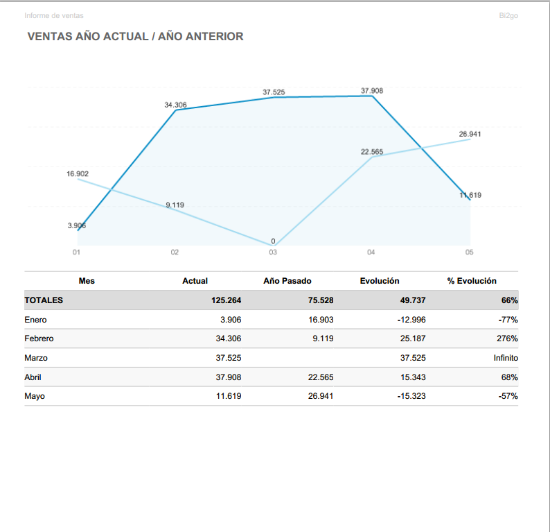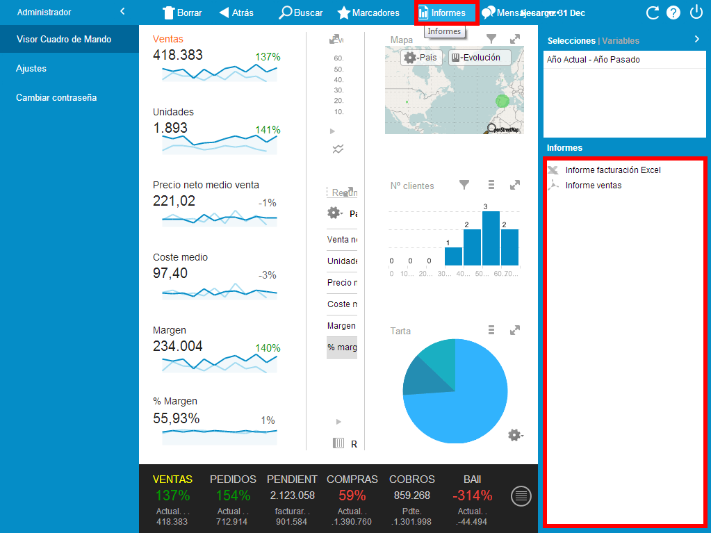 Los informes son accesibles desde el visor en el panel ‘Informes’. Una vez activado el panel, seleccione el informe de Bi2go: