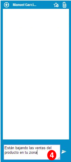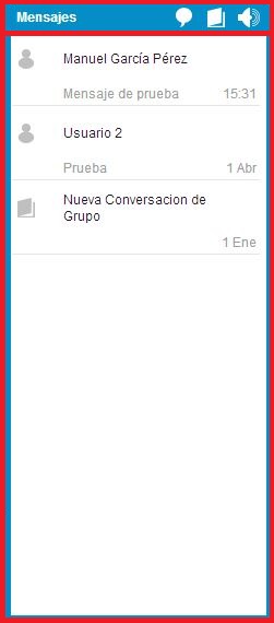 : La comunicación siempre será de un usuario con otro usuario. Los mensajes que se van introduciendo en Bi2go aparecerán como una conversación entre los usuarios.