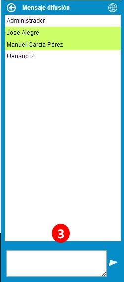 Adicionalmente, Bi2go proporciona la opción de crear mensajes de difusión. Estos mensajes quedarán recogidos en los chats de cada usuario permitiendo que el autor del mensaje no tenga que repetir en cada chat lo mismo
