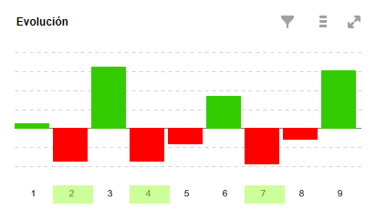 Haga clic con el ratón sobre los valores del eje x que quiera seleccionar. Verá que los valores seleccionados se muestran resaltados en color. Luego haga clic en el botón filtrar .