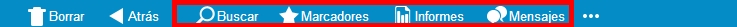 Para poder acceder al panel de selecciones actuales debe activar el panel lateral. El panel lateral se activa haciendo clic sobre cualquiera de las siguientes opciones: ‘Buscar’, ‘Marcadores’, ‘Informes’ y ‘Mensajes’.