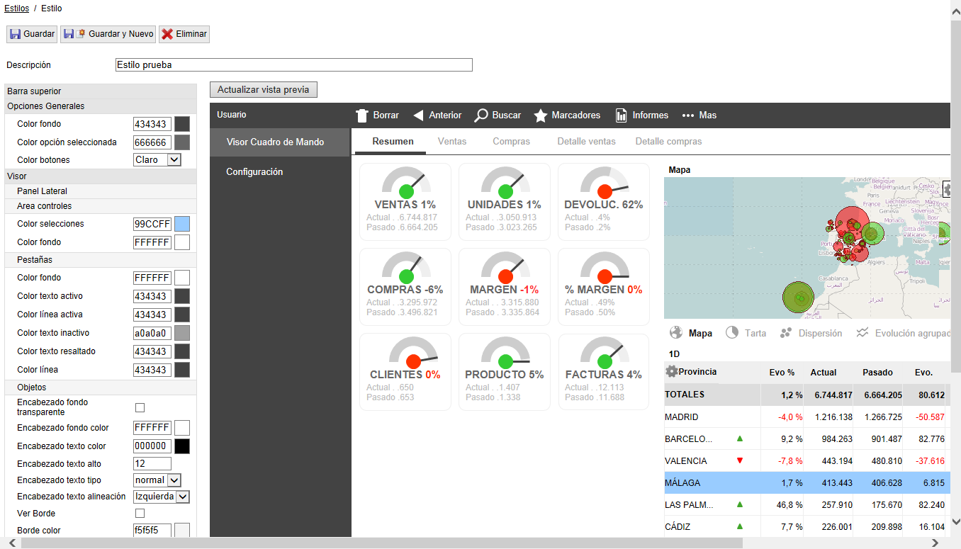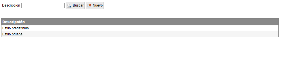 Si hace clic en esta opción, la primera pantalla que encuentra es la pantalla de búsqueda de estilos. Si rellena parcialmente el campo "Descripción" y pulsa el botón