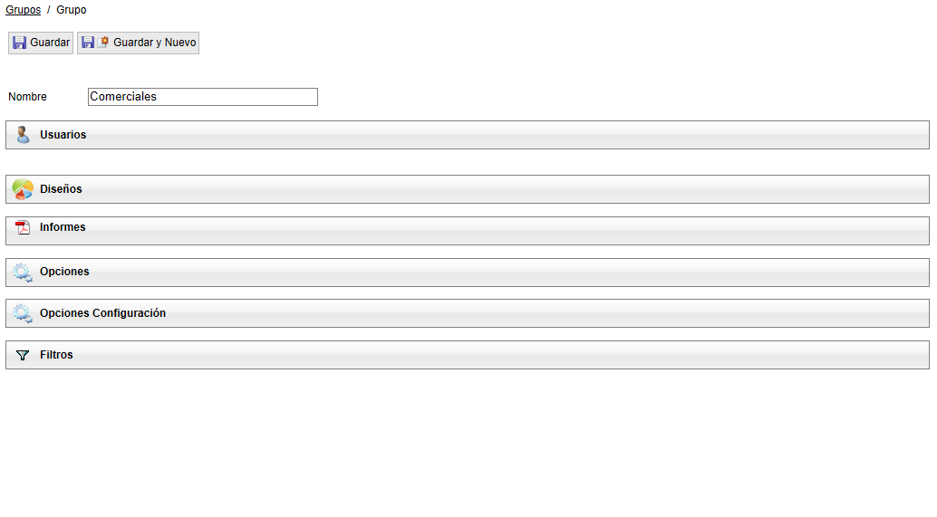 y rellenar las distintas opciones según las necesidades del grupo de usuarios.