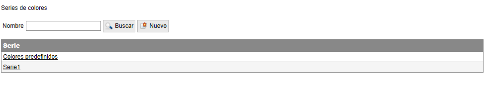 Si hace clic en esta opción, aparecerá la pantalla de búsqueda de series de colores. Si rellena parcialmente el campo "Nombre" y pulsa el botón