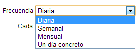 - Frecuencia. Opción que indica el tiempo que trnascurrirá de un envío al siguiente. Puede ser diario, semanal, mensual o un día en concreto.