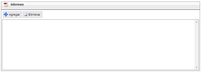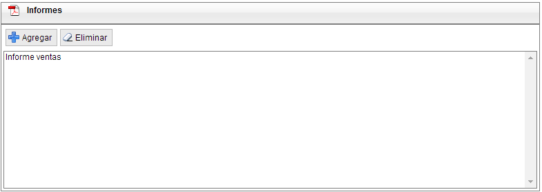 En la parte superior hay dos botones, que permiten añadir y eliminar informes de la lista. Para agregar un nuevo informe se debe pulsar en el botón