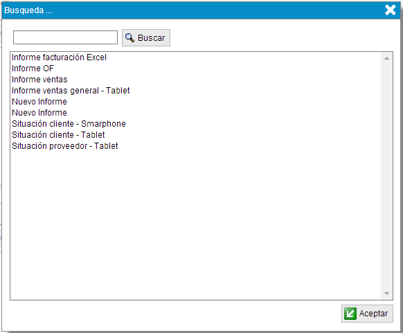 sistema. Si la lista es muy larga se puede utilizar el campo de búsqueda para localizar con mayor facilidad el informe que estemos buscando.