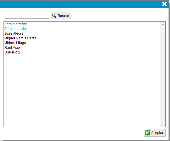 sistema. Si la lista es muy larga se puede utilizar el campo de búsqueda para localizar con mayor facilidad el usuario que estemos buscando.