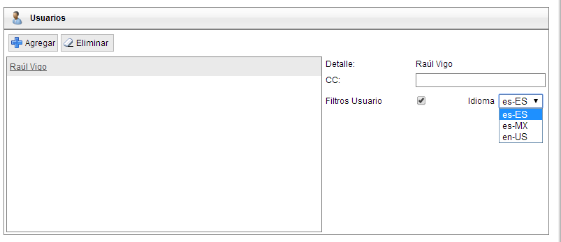 En este caso se selecciona el usuario "Raúl Vigo" y se pulsa en