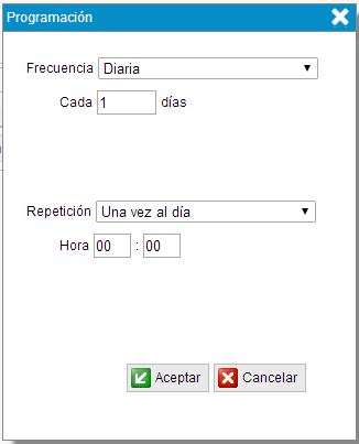 - Repetición. Opción que indica si el envío se realizará una o varias veces al día.