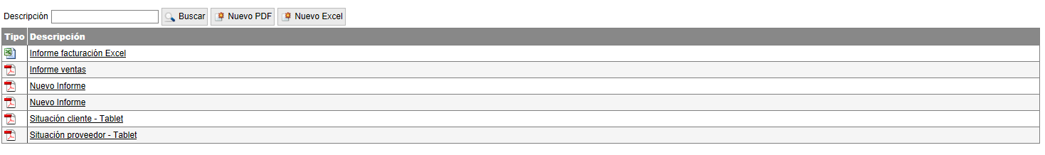 Si hace clic sobre esta opción, se le mostrará una pantalla donde podrá ver todos los informes que existen en la aplicación: