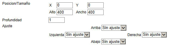 En todas las pantallas de diseño de objetos se incluye una sección con la posición, tamaño, y ajuste del objeto.