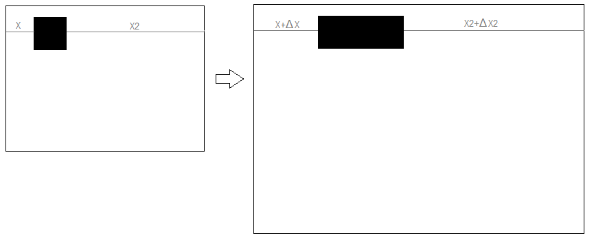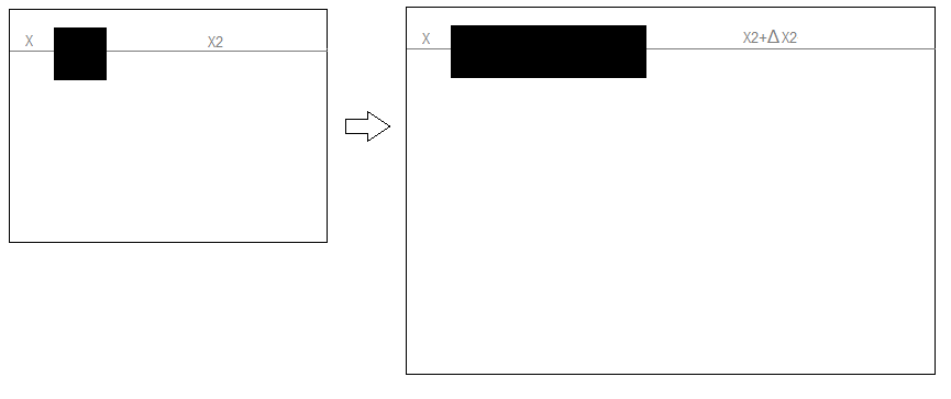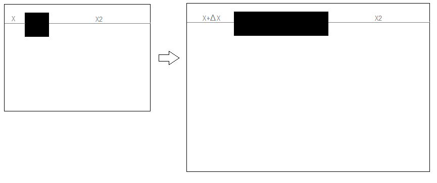 En este caso el objeto no se desplaza pero aumenta su tamaño para mantener la distancia con el margen derecho fija.