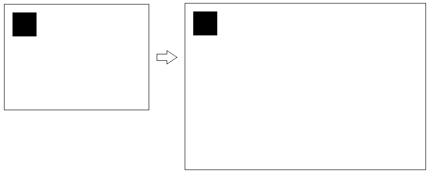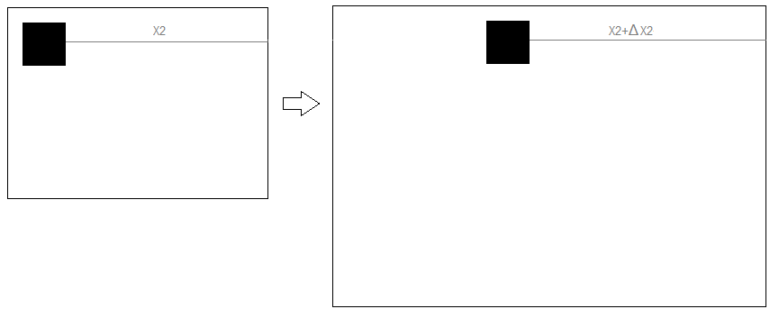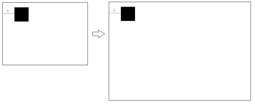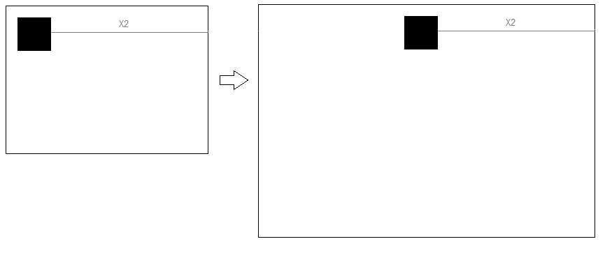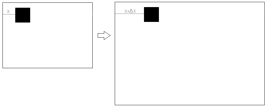 En este caso el objeto no cambia su tamaño pero se desplaza de manera que la distancia con el margen derecho es la original más un incremento proporcional al incremento del area de visualización