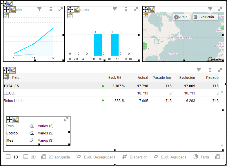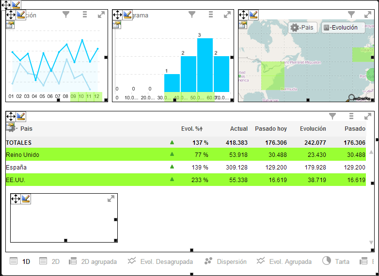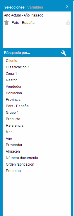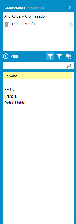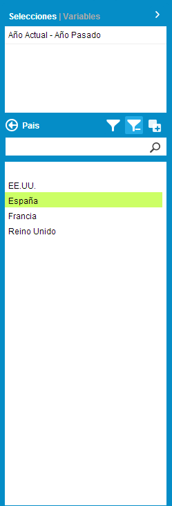 nueva información filtrada. Además estos filtros se añadirán a cualquier objeto de tipo "Selecciones", si existe alguno en la pestaña actual o bien al menú lateral