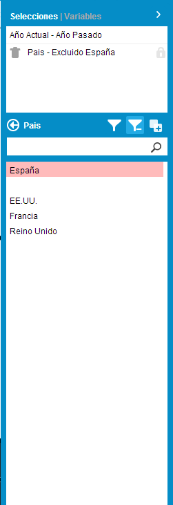 del menú de "Selecciones/Variables". Una vez eliminado el filtro, la información se volverá a reorganizar según los filtros que queden activos (si queda alguno).