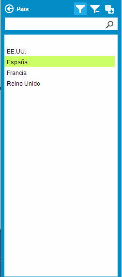 En caso de que el campo por el que va a realizar la selección contenga muchos valores posibles, puede utilizar la opción de búsqueda.