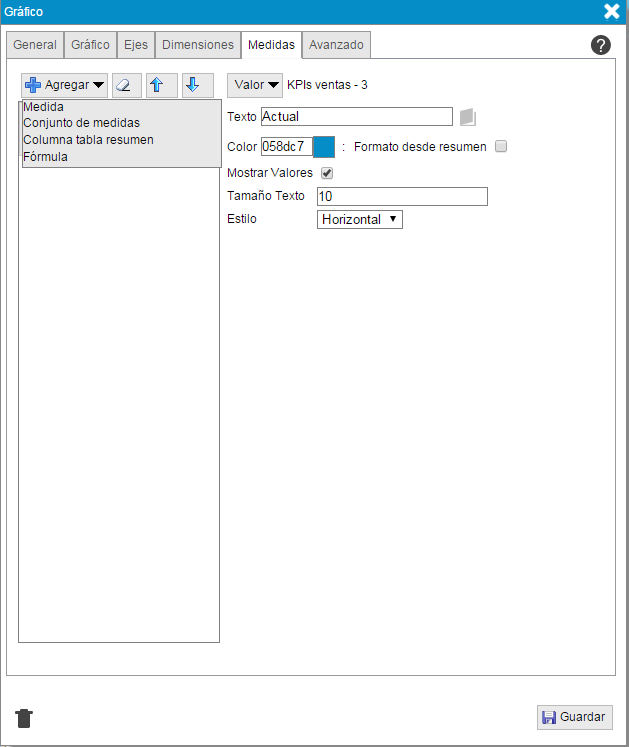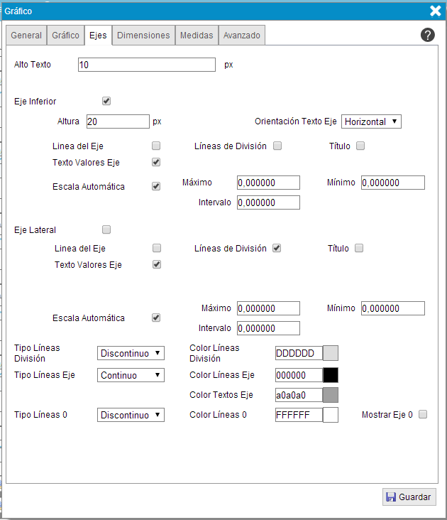 - "Texto valores Eje". Indica si se muestran o no los valores en el eje lateral.