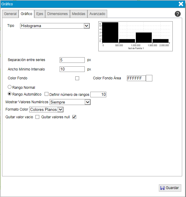 - "Texto valores Eje". Indica si se muestran o no los extremos de los distintos intervalos.
