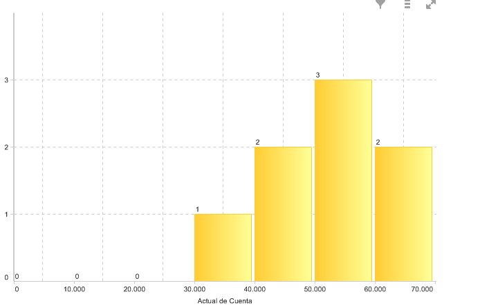- "Ordenar Dimensión". El gráfico histograma lo que hace es calcular la medida para cada dimensión y luego mira, según el resultado, cuantas dimensiones están en cada intervalo.Si añade una nueva dimensión aquí, calcula los resultados teniendo en cuanta ambas dimensiones y luego mira cuanto resultados hay en cada intervalo. Esto tiene sentido cuando ambas dimensiones tienen el mismo significado, por ejemplo la dimensión mes texto y la dimensión mes numérico.