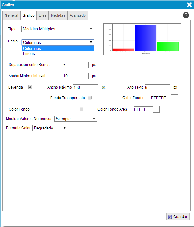 - "Leyenda". Indica si se muestra o no la leyenda junto al gráfico.