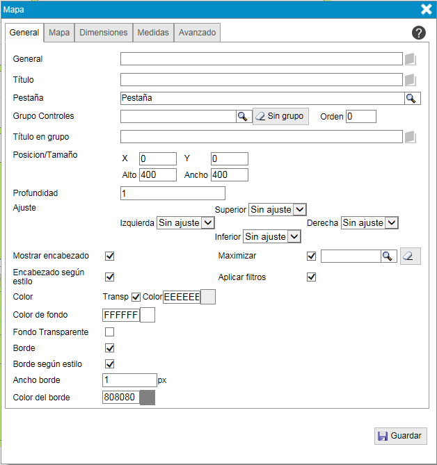 A continuación se explican los distintos campos que aparecen en la pestaña general del objeto Mapa.