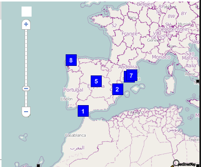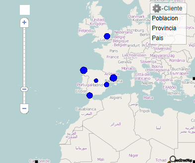 - "Colores distintos". Si marca esta opción cada bolita se representará en el mapa con un color distinto, por el contrario todas las bolas tendrán el color indicado en el campo "Color".