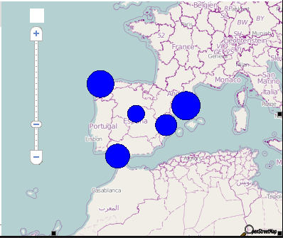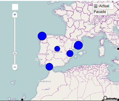 | Medidas. Muestra unas bolas más grandes o más pequeñas según el valor que tenga la medida empleada en el mapa. |