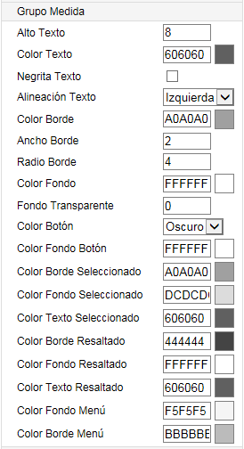 Además, se puede modificar la configuración de estilo del objeto en la pantalla de estilo. Aquí se definirán los colores y fondos de los elemntos, así como el tamaño de texto, etc.