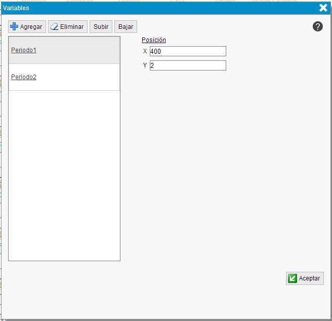 puede añadir las variables que posteriormente se veran en el diseño y con el botón