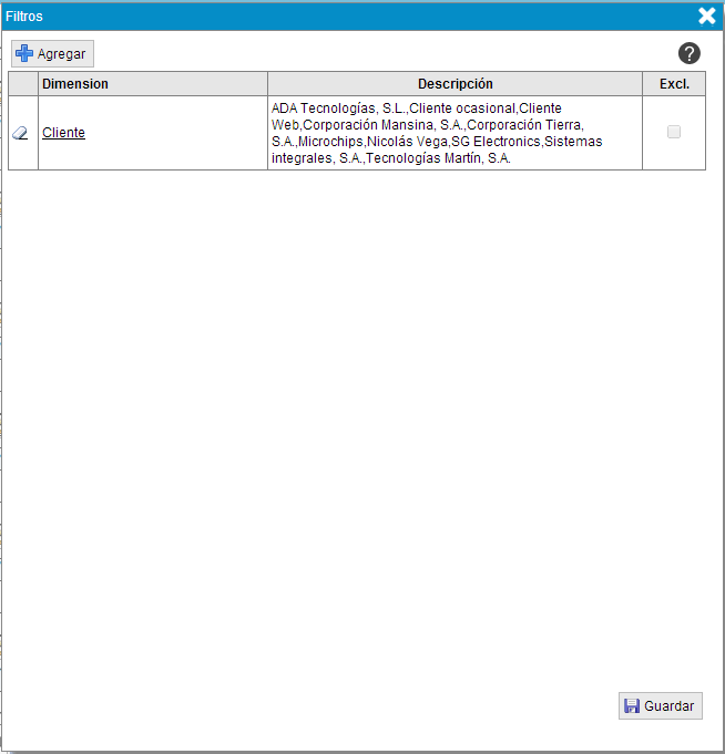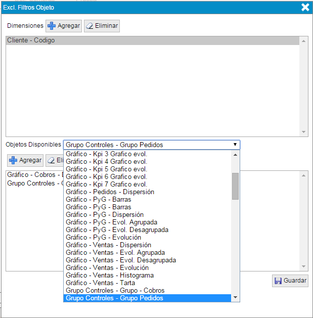 Esta opción le permite gestionar las dimensiones que no realizarán filtrados sobre los objetos de una pestaña.