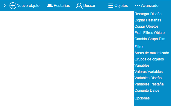 Si desde el diseño de la aplicación accede al menú "Avanzado" encontrará las siguientes opciones que le ayudarán a crear nuevos diseños o a modificar los existentes: