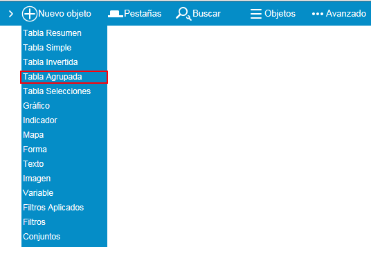 Para incorporar una tabla agrupada, debe acceder al menu "Nuevo Objeto" y seleccionar "Tabla Agrupada":