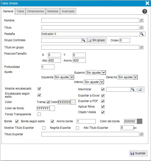 - Fondo transparente. Opción que permite visualizar o no el color de fondo asignado a la tabla simple.