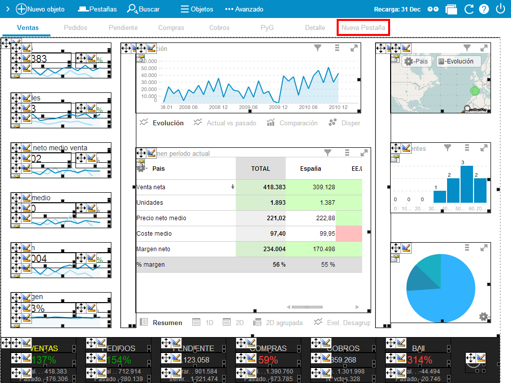 tipo tabla resumen. También se pueden añadir distintos filtros a una pestaña determinada.
