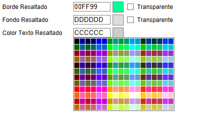 Si hace click en la casilla del color que quiere modificar, se le muestra una paleta de colores donde puede seleccionar el que necesite. En el caso del borde y del fondo, puede hacer que se oculten, marcando la casilla