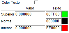 - Color del texto: Si activa esta casilla, podrá fijar un valor que hará que se cambie el color del texto segun el valor del objeto sea mayor, igual o menor al valor fijado